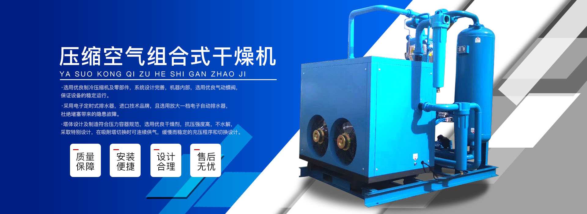 本公司系中國(guó)科學(xué)院、重鋼院、機(jī)電技術(shù)設(shè)計(jì)院、氣動(dòng)技術(shù)研究所等相關(guān)專(zhuān)家合作的具有雄厚技術(shù)力量的高科技實(shí)體,是一個(gè)專(zhuān)業(yè)從事各種氣體干燥凈化及分離純化設(shè)備研究開(kāi)發(fā)及推廣應(yīng)用的高科技公司。公司積多年對(duì)壓縮空氣凈化設(shè)備的生產(chǎn)技術(shù)和銷(xiāo)售經(jīng)驗(yàn),并在消化吸收國(guó)外先進(jìn)技術(shù)的基礎(chǔ)上,結(jié)合國(guó)內(nèi)實(shí)際工況特點(diǎn),研制出適合國(guó)內(nèi)外廣大用戶(hù)的“滬盛”牌HSD系列壓縮空氣冷凍式干燥機(jī)、吸附式干燥機(jī)、后部冷卻器、預(yù)冷機(jī)組、工業(yè)用冷水機(jī)組和HF系列壓縮空氣高效精密過(guò)濾器(國(guó)產(chǎn)濾殼,美國(guó)漢克森HANKISON濾芯)等13大系列計(jì)300多種規(guī)格產(chǎn)品。并且新研發(fā)出燥式干器, 廣泛應(yīng)用于電力、冶金、電子、機(jī)械、石油、化工、汽車(chē)制造、紡織、化纖、輕工、造紙、橡膠、儀表、食品、空氣、卷煙、生物、醫(yī)藥、日化等行業(yè),在國(guó)內(nèi)同行業(yè)中一直處于領(lǐng)先地位。